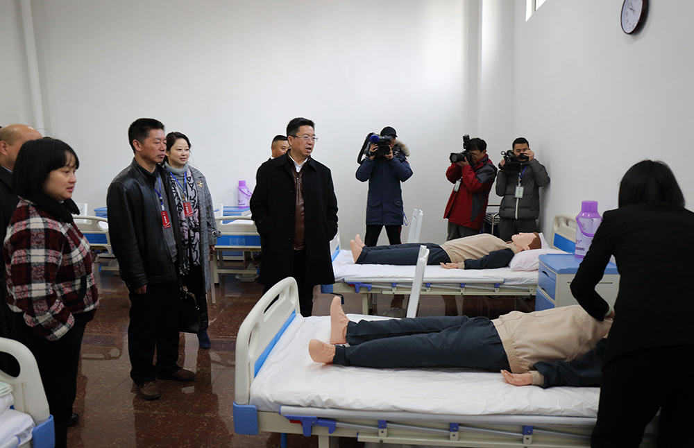 (出席活動的(de)領導參觀蜀祥護校(xiào)實訓室)