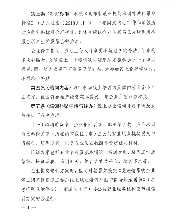 成都(dōu)市(shì)受疫情影(yǐng)響中小(xiǎo )企業(yè)職工(gōng)線上(shàn g)職業(yè)培訓補貼實施細則