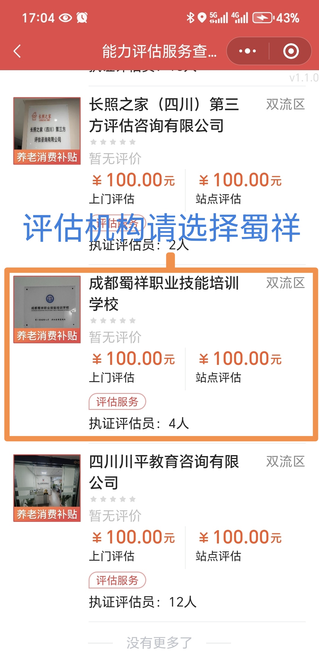 居住在雙流的(de)老(lǎo)人(réσ♥n)如(rú)需評估服務,在選擇評估機(jī)構時(shí)↕£♥€記得(de)選擇“成都華商職業技能培訓學校”,我們将竭誠為(wèi)您提供高(gāo)效≈ ♥∏、快(kuài)捷、專業(yè)的(de)評估服務。如(rú)果擔憂評不( Ω≈bù)上(shàng),也(yě)可(kě)以先聯系我們↑$α±,我們可(kě)以對(duì)老(lǎo)人(rén)情況進行(xín£®g)初步判斷,聯系電(diàn)話(huà)18117866007,杜老(lǎ©₩o)師(shī)。
